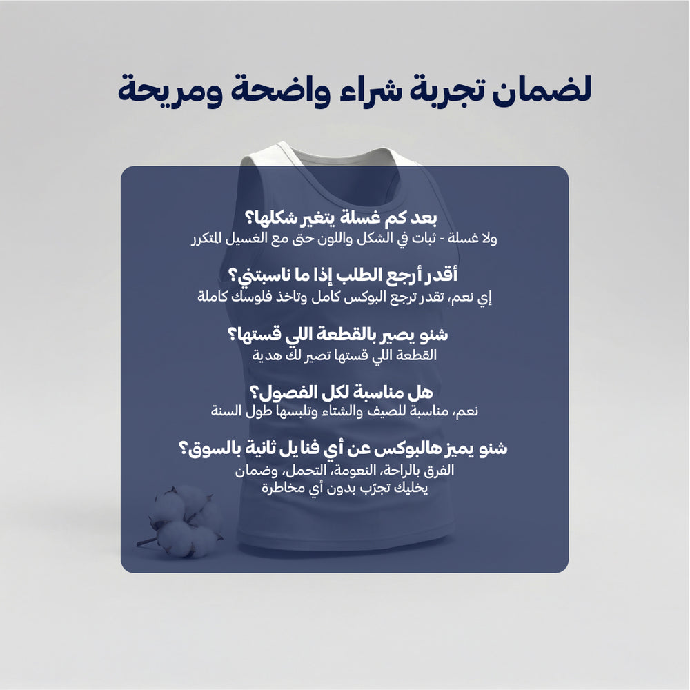 مصممة بمقاسات تناسب جميع الأجسام وتتحمّل الغسيل المتكرر مع ثبات الشكل واللون.