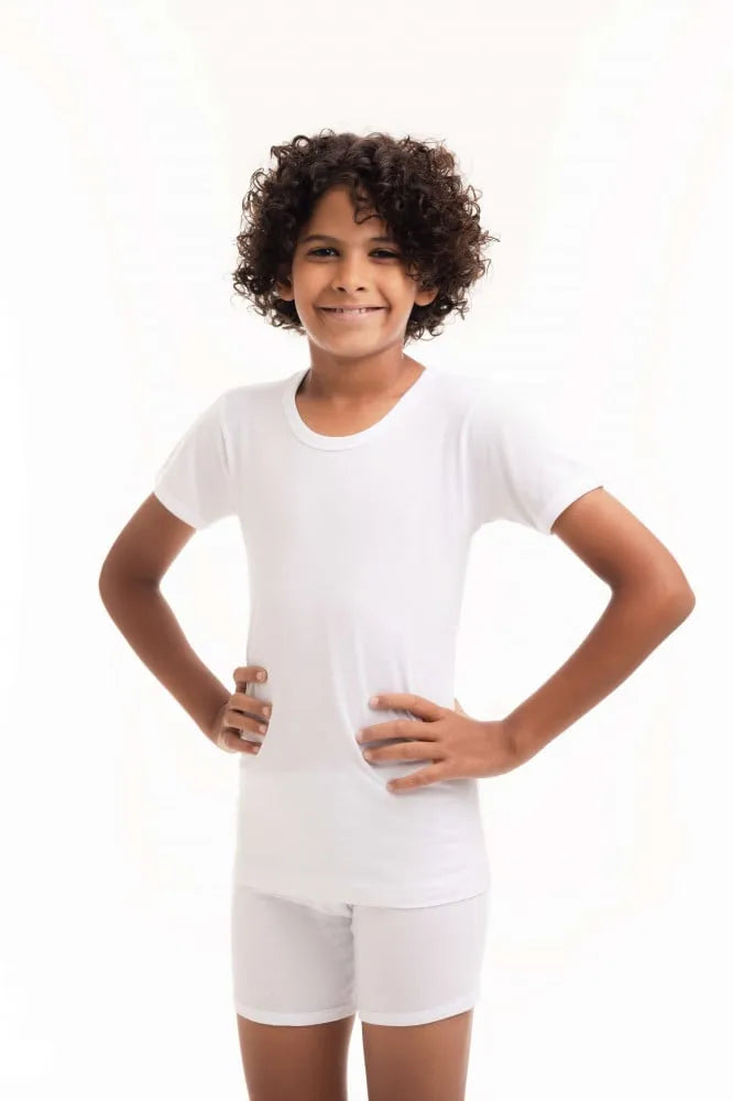 بوكس 6 قطع طقم فنيلة وهاف نصف كم دائري أبيض ولادي